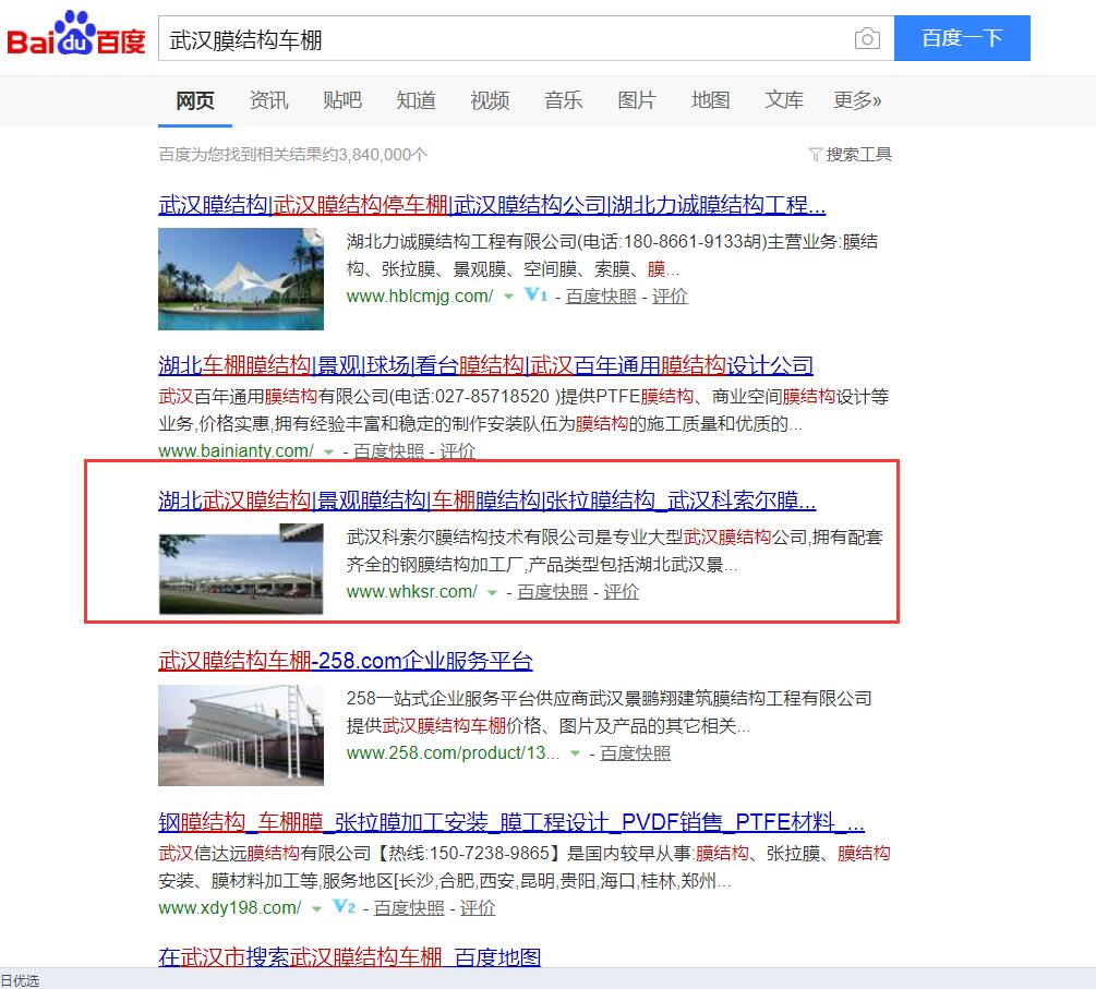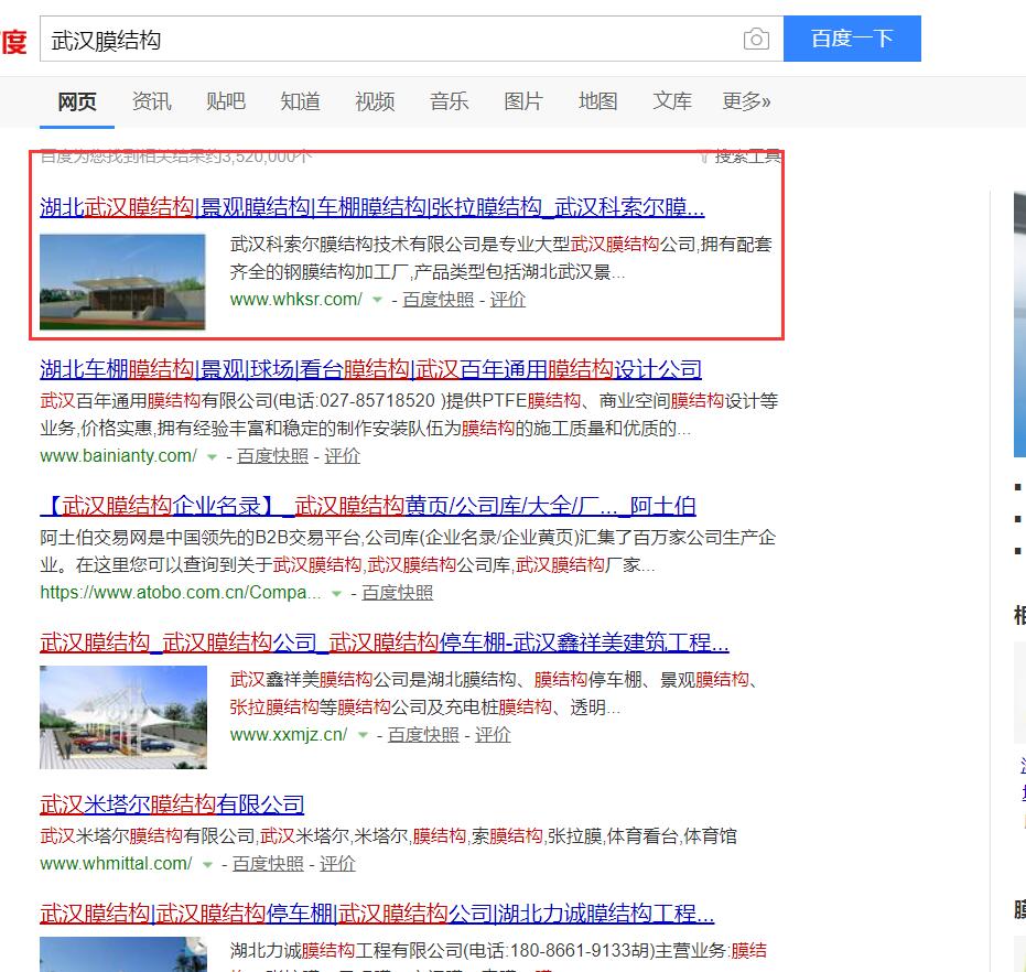 武漢科索爾膜結構技術有限公司網站建設及優化